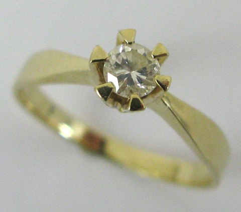 Ring af 14 kt guld, prydet med brillantsleben diamant på ca. 0,20 ct. Ring Str. 54