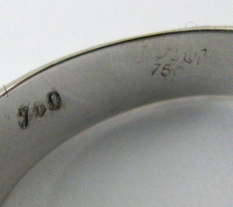 Prydet med 10 stk. brillantslebne diamanter i forløb med 1 stk. større brillantsleben diamant i midten, henholdsvis 3 stk. og 6 stk. på hver side.