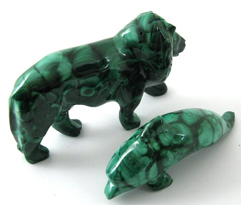 To figurer af Kenya Malakit i form af løve og delfin