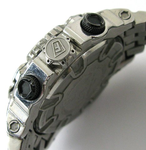 Festina chronograph herrearmbåndsur i urkasse og lænke af stål. Ref. nr. F16542 med metallic grøn skive, streg- og talindikation, separat sekundviser, datovisning i #3½ positionen og chronograph funktioner. Quartsværk. Urkasse diameter 48 mm.