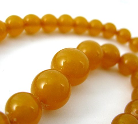 Halskæde, fremstillet af transparent, ensfarvet Østersø rav i form af polerede perler 10 - 16 mm. L. 51 cm. Vægt 32 gr.