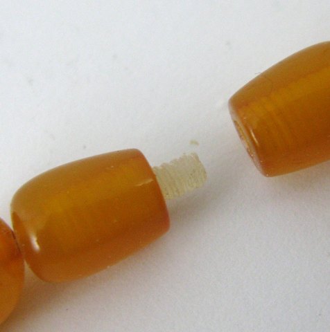 Halskæde, fremstillet af transparent, ensfarvet Østersø rav i form af polerede perler 10 - 16 mm. L. 51 cm. Vægt 32 gr.