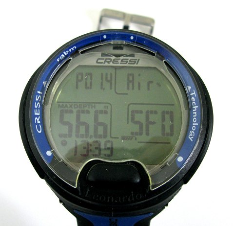 Stor dykkerur med Cressi RGBM algorytme dykkercomputer med logbog for 70 timer eller 60 dyk. Manuel indstilling af enten metrisk/tomme og grader cesius/fahrenheit samt CNS oxygen indikator. Quartzværk. Urkasse diameter 65! mm. Gummirem med metalspænde L. 33 cm!