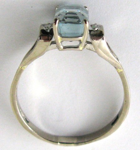 Ring af 18 kt. hvidguld med aquamarin on brillanter 0,05 ct.