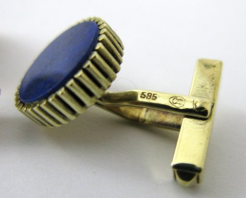 Par manchetknapper af 14 kt. guld, prydet med indfattet lapis lazuli, diameter 15 mm., vægt 11,3 gr.
