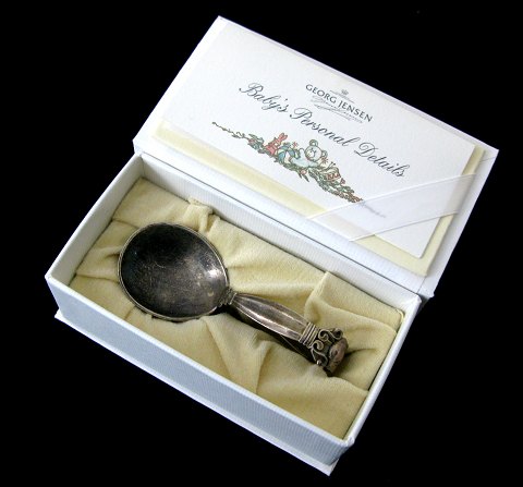 Georg Jensen babyske af sterling sølv med bøjet skaft i Konge mønster. L. 9,5 cm.