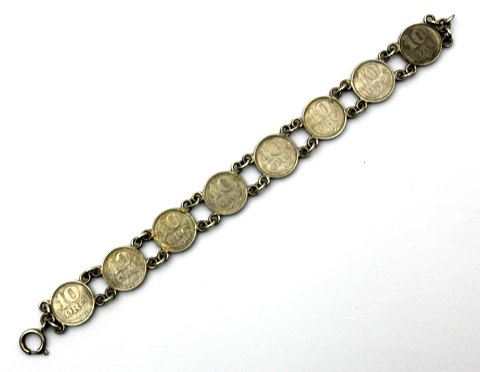 Armlænke fremstillet delvis af Christian X 10 ører sølv