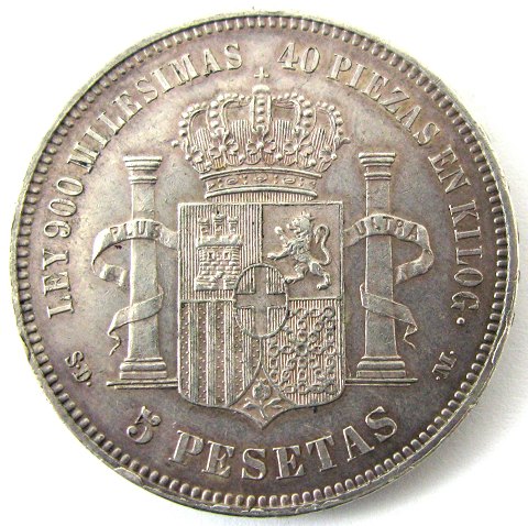 Spanien, 5 pesetas 1871 (71) SD M - KM 666