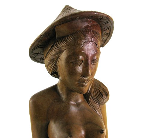 Balinesisk figur *Pige bærer frugt* af Sowar træ, H. 58 cm.