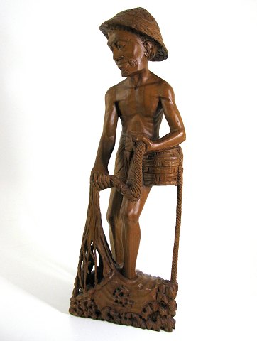 Balinesisk figur *Fisker med kastenet* af Sowar træ, H. 56,5 cm.