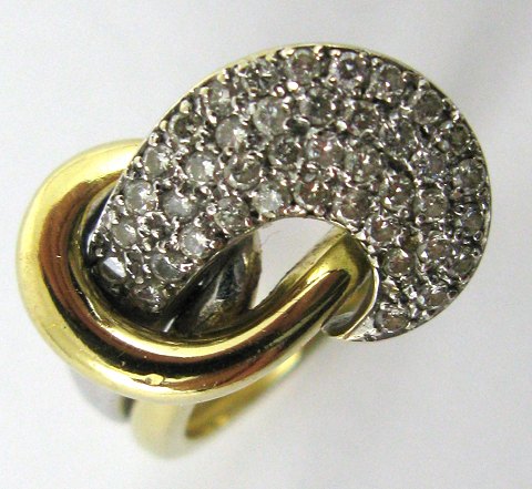 Ring af 18 kt., tofarvet guld med talrige små brillanter