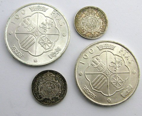 Spanien, Alfonso VIII og Franco, 50 Centimos og 100 Pesetas sølv