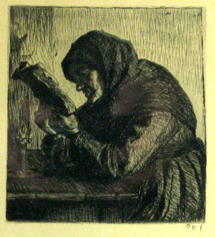 Anna Ancher (1859-1935): Læsende gammel Kone, radering