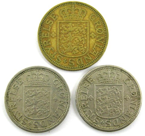 Grønland, 1 kr og 2x 25 øre 1926 *Grønland Styrelse*