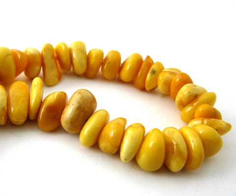 Tętsluttende halskęde, betrukket med lyse ravstykke ca. 10 x 17 mm. Kęde L. 37 cm.