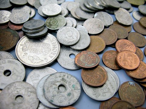 Samling mønter fra hele verden - delvist gangbar, over 1 kg.