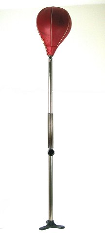 Boksebold af håndsyet kunstskind på fjederdelt stativ med trifod, beregnet til montage i gulv. Totalhøjde 130 cm.