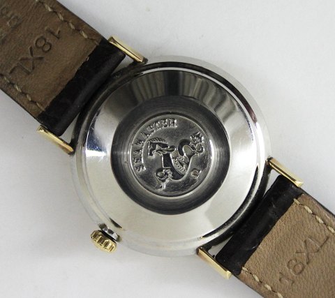 Omega Seamaster De Ville Automatic herrearmbåndsur i urkasse af delvist forgyldt stål. Sølvfarvet skive med stregindikationer, central sekundviser og datovisning i #3 positionen. Automatisk værk. Urkasse diameter 34 mm. Læderrem med metalspænde.