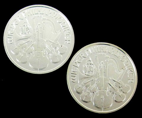 *Wiener Philharmoniker*, begge 1 ounce finsølv.