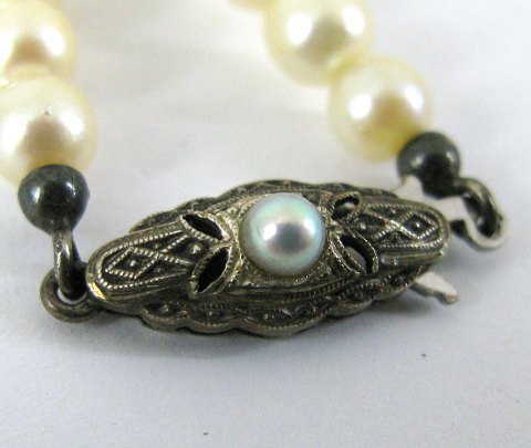 Tætsluttende perlekæde med 5½ mm. kulturperler og lås af sølv