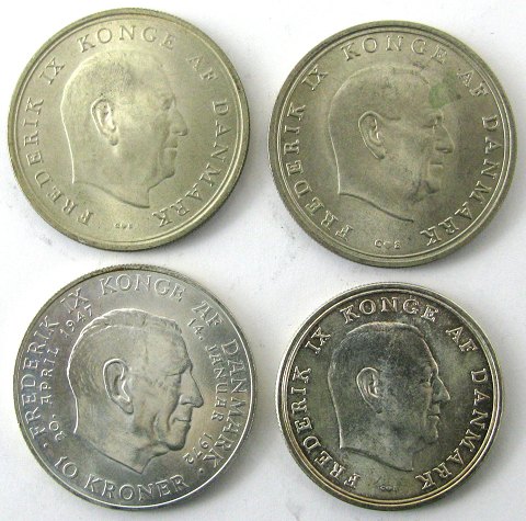 Frederik IX, 5 kr og 10 kr sølv erindringsmønter (4)