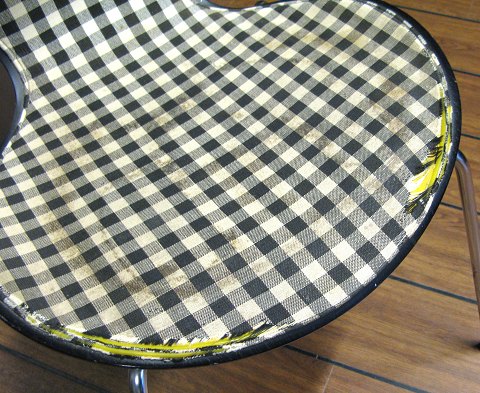 Par AJ 3107 - 7'er stole med blød ryg, dog med stel af metal som er i orden.