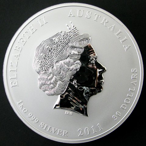Australien, 30 dollars 2011, 1 kg finsølv "Year of the Rabbit"