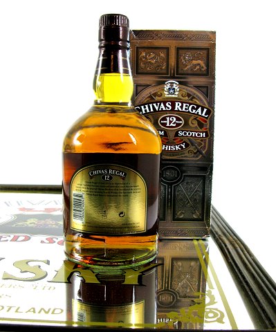 1 lt. Chivas Regal 12 år gl. whisky samt reklamespejl.