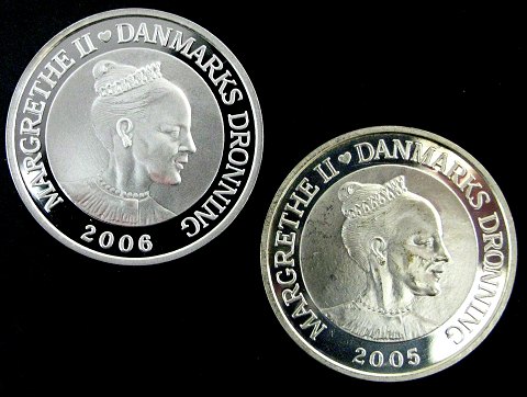 Margrethe II, 10 kr finsølv 2005 og 2006 (2)