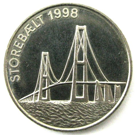 Præget i anledning af åbningen af Storebælt forbindelsen i 1987.