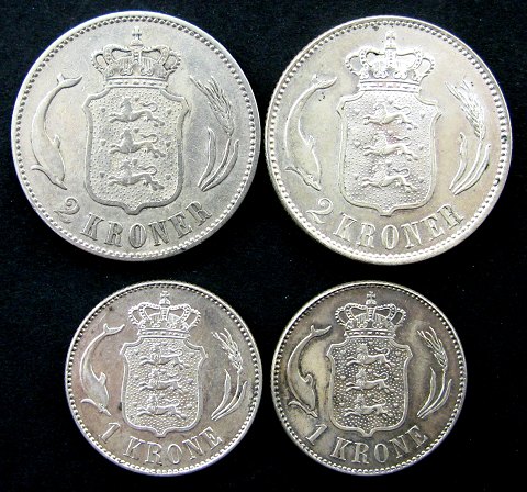 Christian IX / Christian X, 1 kr og 2 kr sølv 1875 - 1916 (4)