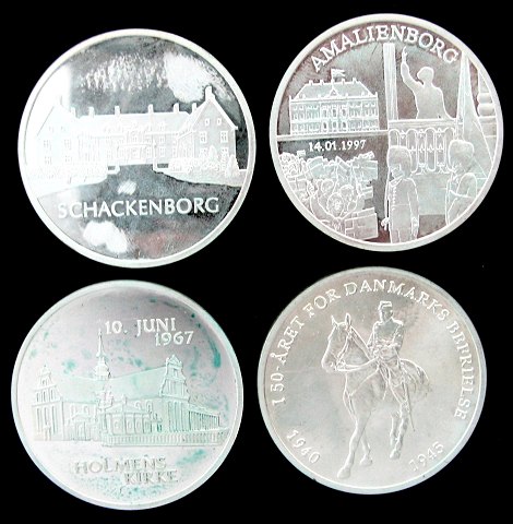 Lot bestående af Panimex medaille Dronning Margrethe II og Prins Henriks bryllup 1992 - Dronning Margrethe II, 25 åre regeringsjubilæum 1997 - Prins Joakim og Prinsesse Alexandras bryllup 1995 - Danmarks befrielse 1945. Diameter 33 mm., samlet vægt 60 gr.