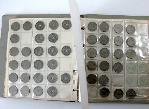 Samling med i alt 252 forskellige årstalsmønter 1, 2, 5, 10 og 25 øre samt 1 kr og 5 kr