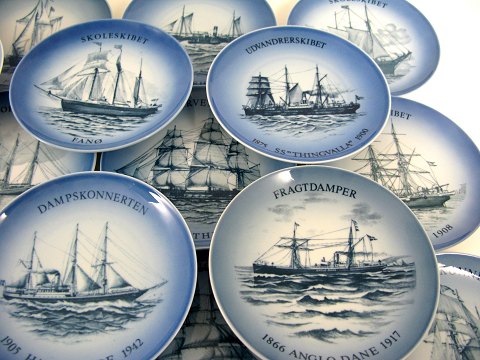 B & G lot skibsplatter, udgivelsesår 1975 - 1998 komplet. Diameter 18 cm. Alle med udførlig beskrivelse af motivet på bagsiden.