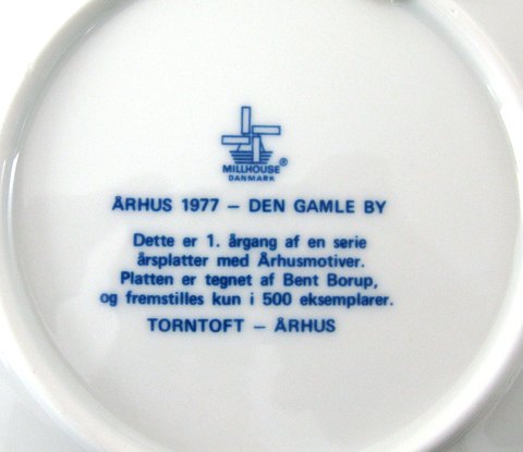 Aarhus platten er tegnet af Bent Borup og kun fremstillet i 500 eksemplarer af Millhouse, Danmark. Diameter 19,5 cm.