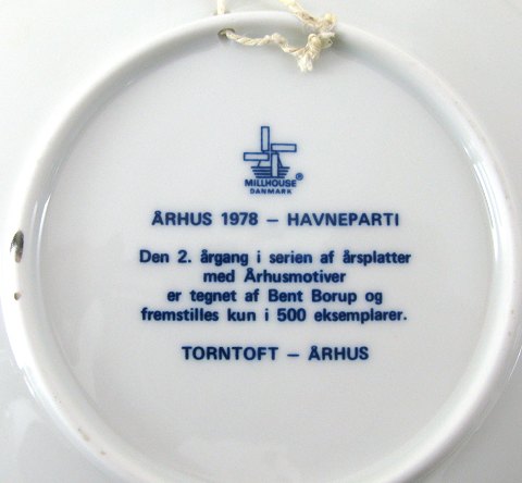Aarhus platten er tegnet af Bent Borup og kun fremstillet i 500 eksemplarer af Millhouse, Danmark. Diameter 19,5 cm.