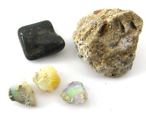 Samling diverse rå opaler fra Honduras, Mexico og Etiopien (5)