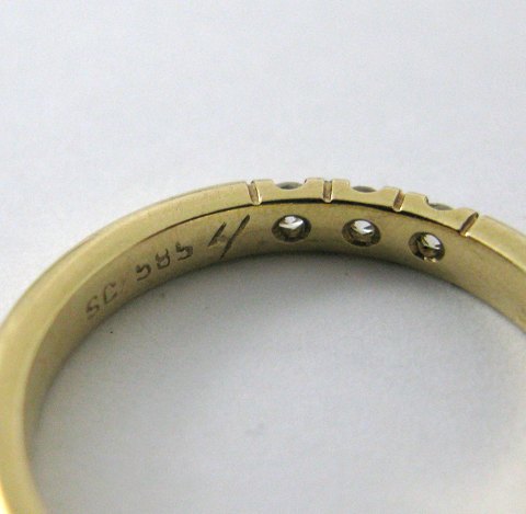 Alliancering af guld 14 kt prydet med 3 brillanter i alt 0,12 ct.