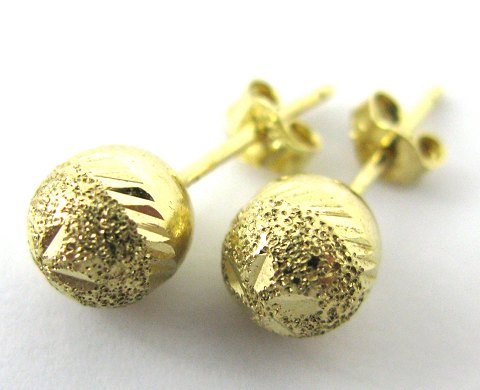 Par ørestikker af 14 kt. guld, udformet som kugle med dekoration. Diameter 7 mm., samlet vægt 1,7 gr.