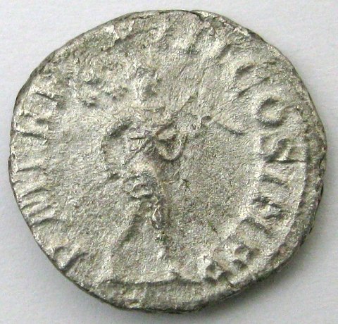 slået i Rom; IMP SEV ALE – XAND AVG, Profil af Alexander iført laurbærkrans; PM TR P VIII COS III PP, Mars gående mod højre, spyd i højre hånd, venstre hånd holder trofæ over venstre skulder. RIC 93.