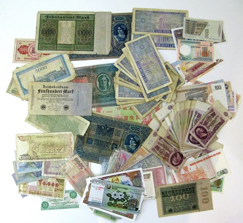 +Samling med 171 pengesedler fra hele verden. Heriblandt en del ucirkulerede sedler fra Sydøstasien og Sydamerika samt et større antal sedler fra Rumænien.