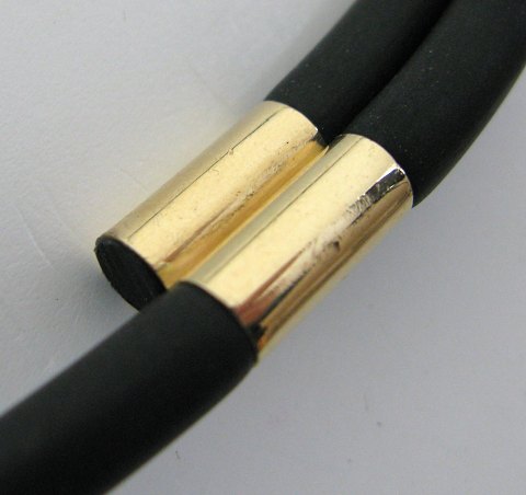 Maskulin kæde af gummi, prydet med rør af 14kt. guld