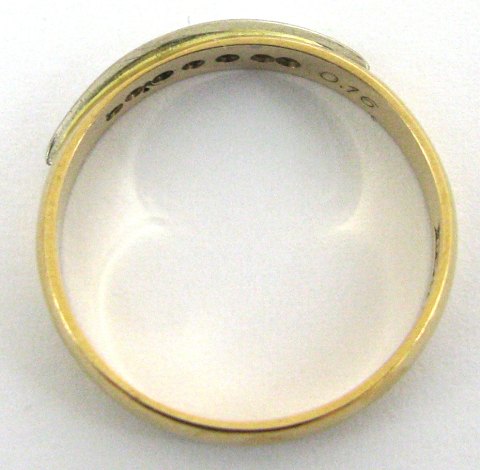 Svensk ring af 18 kt. guld, prydet med 7 brillanter i forløb, tilsammen ca. 0,15 ct. Ring str. 62, vægt 3,9 gr.