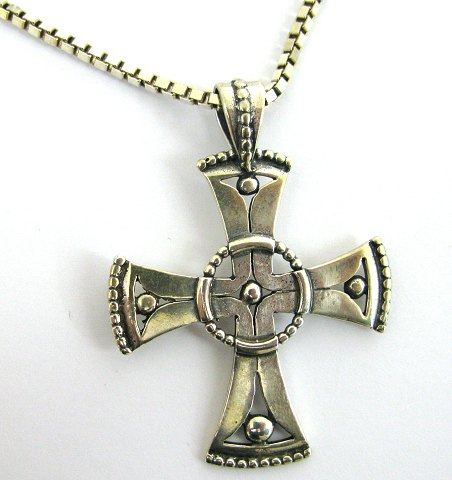 Halskæde og keltisk kors af sterling sølv, Vedhæng 55 x 45 mm. Kæde L. 68 cm.