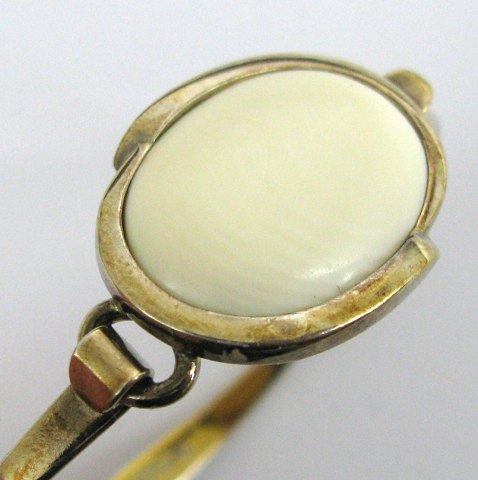 Armring af sterling sølv, prydet med indfattet stykke elfenben. Indvendig ca. 62 x 55 mm.
