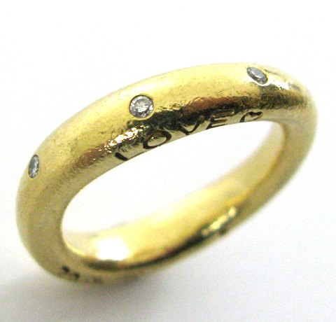 Ole Lynggaard ring af 18 kt. guld, skinne i siden med gravure *Love* og hjerte, ydermere prydet med 3 brillantslebne diamanter på samlet ca. 0,05 ct. Ring str. 56, design Charlotte Lynggaard.