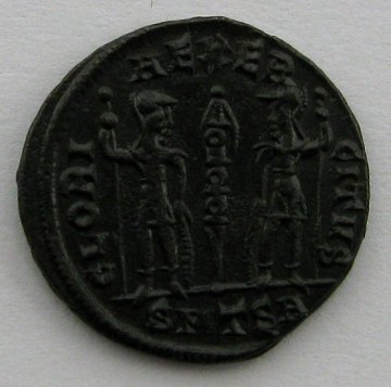 Avers: CONSTANTI-NVS MAX AVG, draperet buste med rosettediadem og kyras