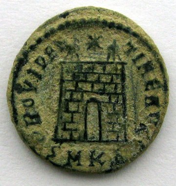 Avers: CONSTANTINVS AVG, profil med laurbærkrans.