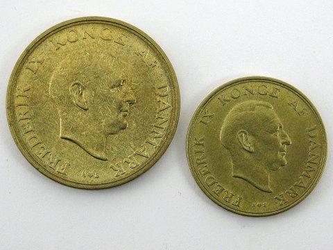 2 kr 1955 næsten ucirkuleret og 1 kr 1955