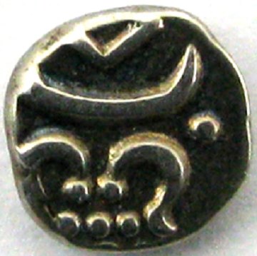Slået under Rama Varma IV mellem ca. 1860 og 1880. Sølv (med ca. 6-8 karat guld ifølge medfølgende seddel.) 0,49 gram total totalvægt.